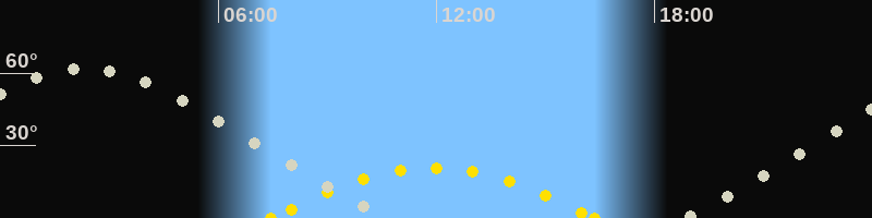 | Höchster Sonnenstand (Kulmination) | 11:54 Uhr (h = 20.7°) |