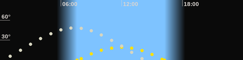 Höchster Sonnenstand (Kulmination)11:56 Uhr (h = 19.3°)