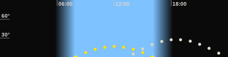 | Höchster Sonnenstand (Kulmination) | 12:00 Uhr (h = 17.1°) |
