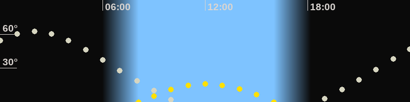 | Höchster Sonnenstand (Kulmination) | 12:04 Uhr (h = 16°) |