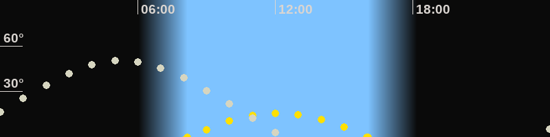 | Höchster Sonnenstand (Kulmination) | 12:06 Uhr (h = 15.9°) |