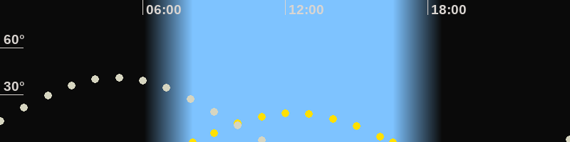 | Höchster Sonnenstand (Kulmination) | 12:19 Uhr (h = 18.4°) |