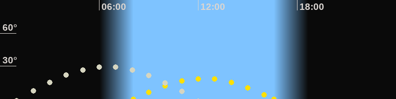 | Höchster Sonnenstand (Kulmination) | 12:20 Uhr (h = 18.8°) |