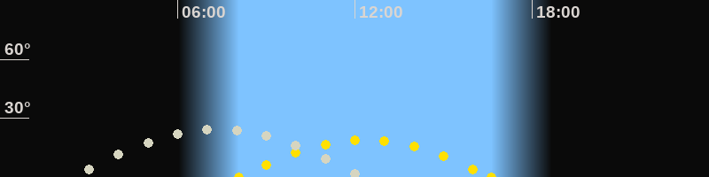 | Höchster Sonnenstand (Kulmination) | 12:20 Uhr (h = 19°) |