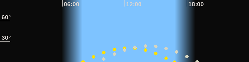 | Höchster Sonnenstand (Kulmination) | 12:22 Uhr (h = 20.6°) |