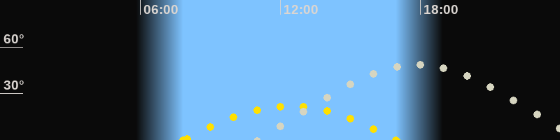 | Höchster Sonnenstand (Kulmination) | 12:23 Uhr (h = 21.9°) |
