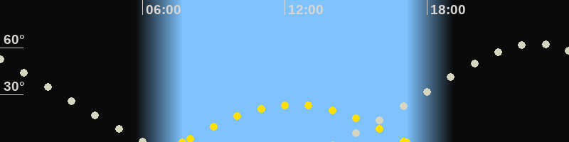 Höchster Sonnenstand (Kulmination)12:24 Uhr (h = 23.7°)
