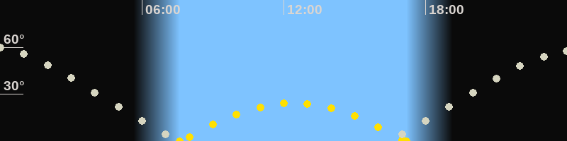 | Höchster Sonnenstand (Kulmination) | 12:24 Uhr (h = 24.3°) |