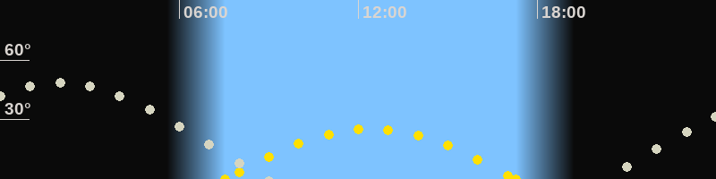 | Höchster Sonnenstand (Kulmination) | 12:24 Uhr (h = 25.3°) |