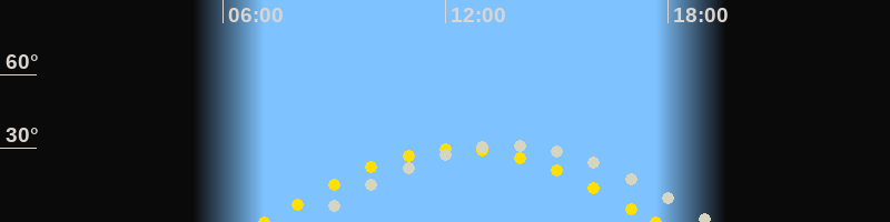 | Höchster Sonnenstand (Kulmination) | 12:23 Uhr (h = 29.9°) |