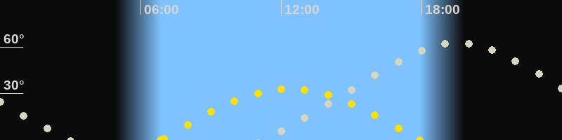Höchster Stand (Kulmination)19:30 Uhr (h=62.7°)