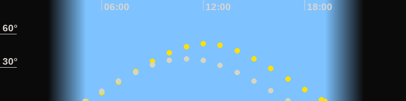 | Sonnenaufgang | 05:05 Uhr im Osten (αAz = 70.4°) |