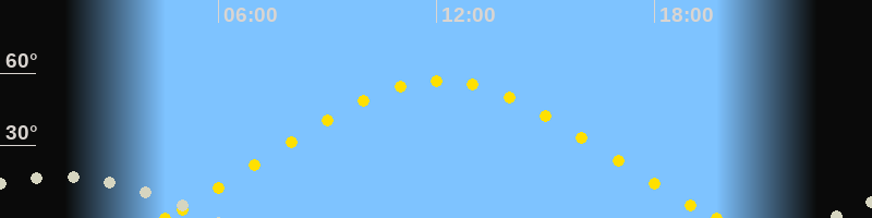 | Höchster Sonnenstand (Kulmination) | 12:06 Uhr (h = 56.9°) |