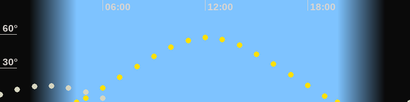 | Höchster Sonnenstand (Kulmination) | 12:06 Uhr (h = 57.2°) |