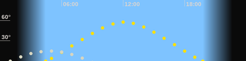 | Höchster Sonnenstand (Kulmination) | 12:06 Uhr (h = 57.7°) |