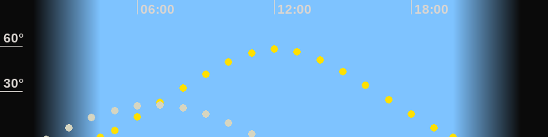 | Höchster Sonnenstand (Kulmination) | 12:06 Uhr (h = 58.2°) |