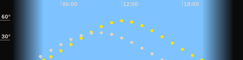 | Höchster Sonnenstand (Kulmination) | 12:06 Uhr (h = 59.1°) |