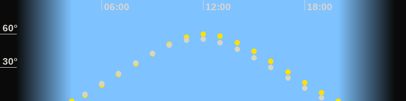 | Höchster Sonnenstand (Kulmination) | 12:06 Uhr (h = 59.7°) |
