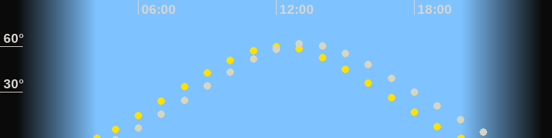 | Höchster Sonnenstand (Kulmination) | 12:07 Uhr (h = 60.1°) |