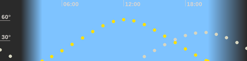 | Höchster Sonnenstand (Kulmination) | 12:08 Uhr (h = 61.3°) |