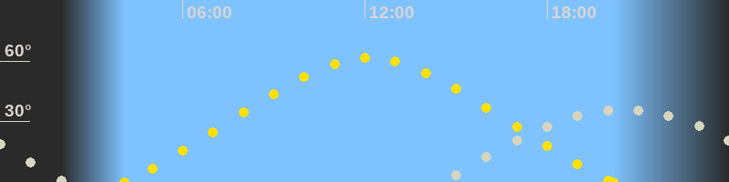 | Höchster Sonnenstand (Kulmination) | 12:08 Uhr (h = 61.5°) |