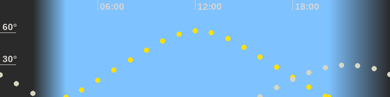 Höchster Sonnenstand (Kulmination)12:08 Uhr (h = 61.6°)