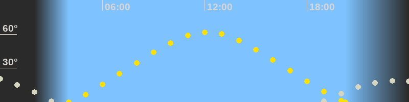 | Höchster Sonnenstand (Kulmination) | 12:08 Uhr (h = 61.8°) |
