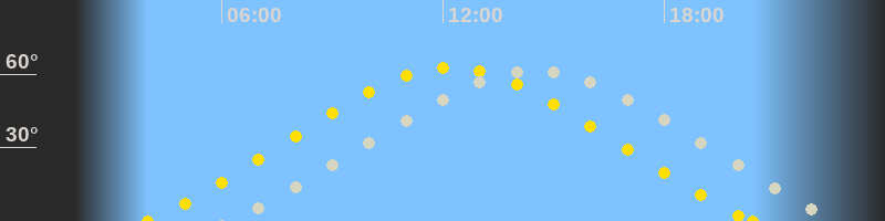 | Höchster Sonnenstand (Kulmination) | 12:12 Uhr (h = 62.7°) |
