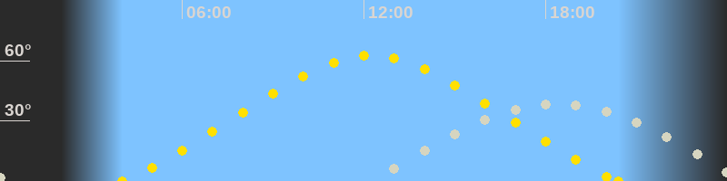 | Höchster Sonnenstand (Kulmination) | 12:13 Uhr (h = 62.5°) |