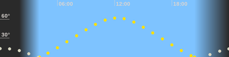 | Höchster Sonnenstand (Kulmination) | 12:15 Uhr (h = 61.9°) |