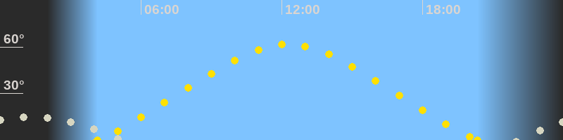 Höchster Sonnenstand (Kulmination)12:15 Uhr (h = 61.8°)