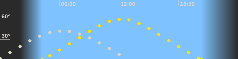 | Höchster Sonnenstand (Kulmination) | 12:16 Uhr (h = 61.1°) |