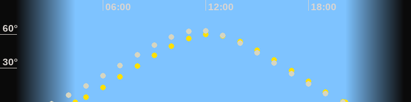 | Höchster Sonnenstand (Kulmination) | 12:16 Uhr (h = 59.9°) |