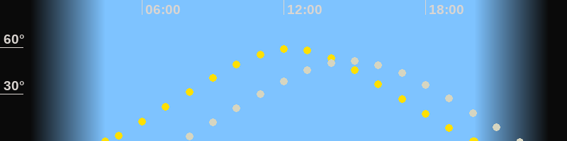 | Höchster Sonnenstand (Kulmination) | 12:16 Uhr (h = 59.1°) |