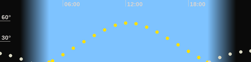 | Höchster Sonnenstand (Kulmination) | 12:16 Uhr (h = 56.7°) |
