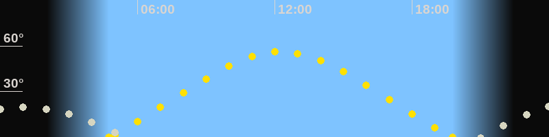 | Höchster Sonnenstand (Kulmination) | 12:16 Uhr (h = 56.2°) |