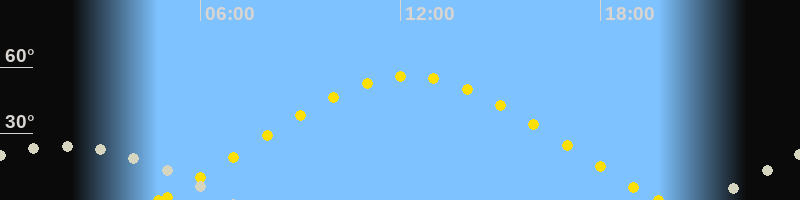 | Höchster Sonnenstand (Kulmination) | 12:16 Uhr (h = 55.9°) |