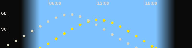 | Höchster Sonnenstand (Kulmination) | 12:14 Uhr (h = 53.3°) |