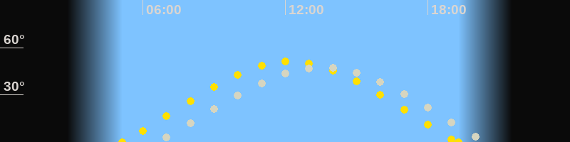 | Sonnenaufgang | 05:08 Uhr im Osten (αAz = 69.8°) |