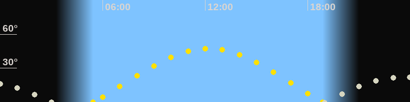 Höchster Sonnenstand (Kulmination)12:10 Uhr (h = 47.5°)