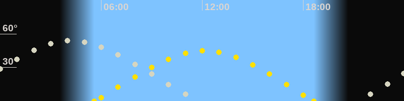 | Sonnenaufgang | 05:35 Uhr im Osten (αAz = 80.2°) |