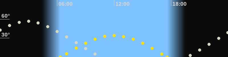 Höchster Sonnenstand (Kulmination)11:58 Uhr (h = 34.1°)