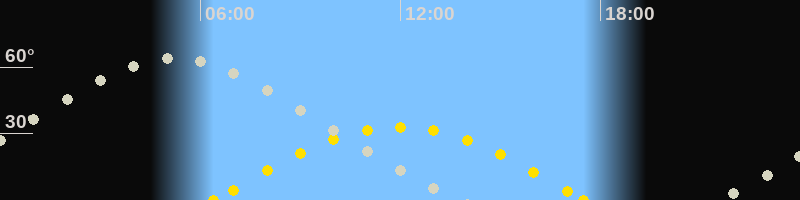 | Sonnenaufgang | 06:24 Uhr im Osten (αAz = 99.1°) |