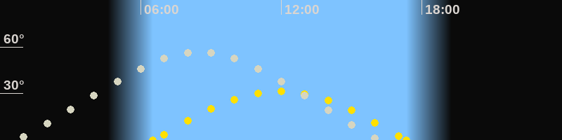 | Sonnenaufgang | 06:30 Uhr im Osten (αAz = 101.6°) |