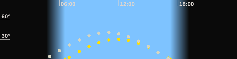 | Höchster Sonnenstand (Kulmination) | 11:55 Uhr (h = 30.3°) |