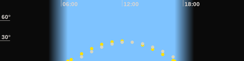 Höchster Sonnenstand (Kulmination)11:55 Uhr (h = 29.6°)