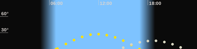 | Mondaufgang | 14:30 Uhr im Südosten (αAz = 129.7°) |