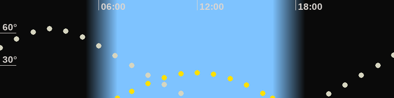 Höchster Sonnenstand (Kulmination)11:53 Uhr (h = 23.5°)