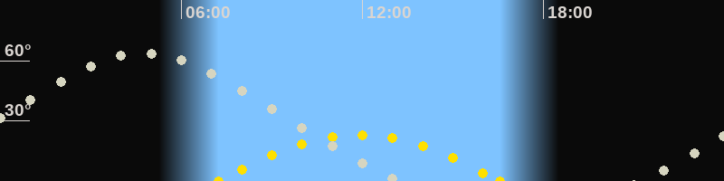| Höchster Sonnenstand (Kulmination) | 11:53 Uhr (h = 23°) |
