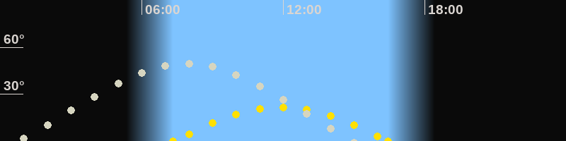 | Sonnenaufgang | 07:20 Uhr im Südosten (αAz = 117.4°) |